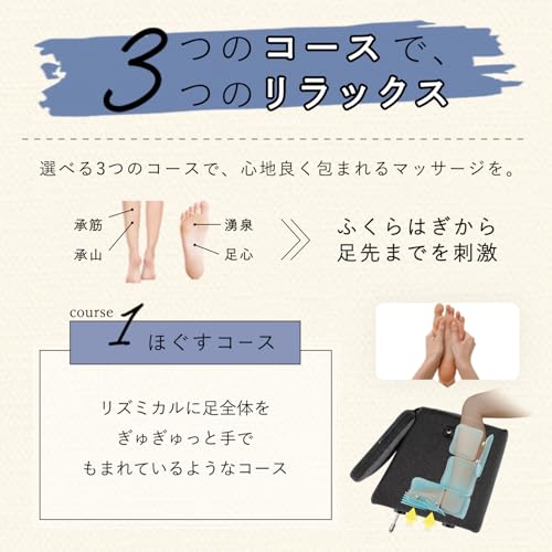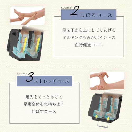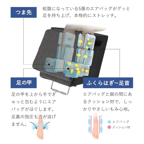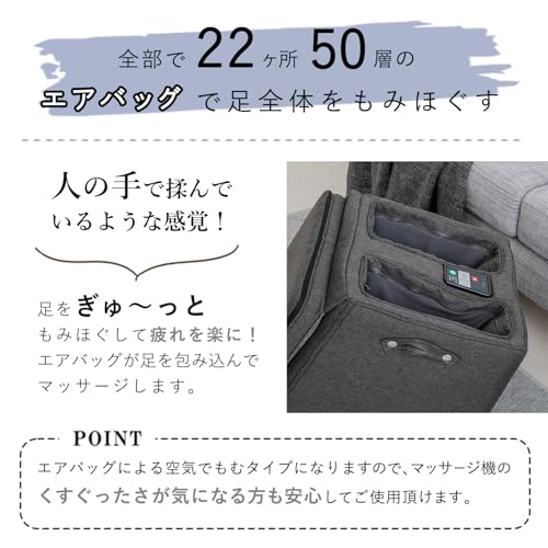 この形態だと足のマッサージで重要な足裏とふくらはぎが同時にマッサージできます。単に同時にマッサージするだけでなく、足裏をぎゅっと締めた後にふくらはぎをしめるなど、血液の流れを意識したマッサージが可能です。