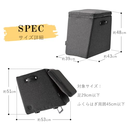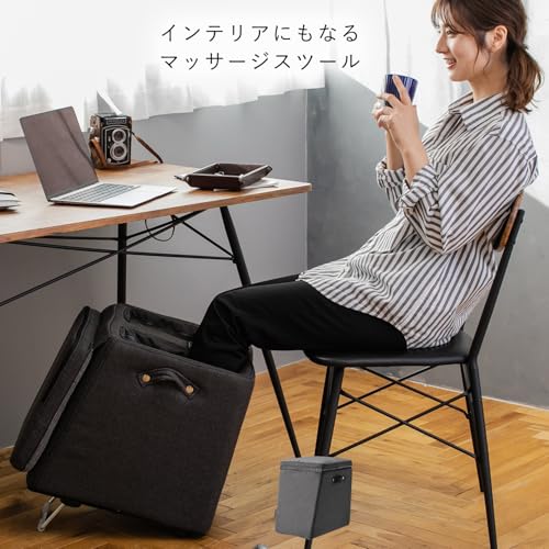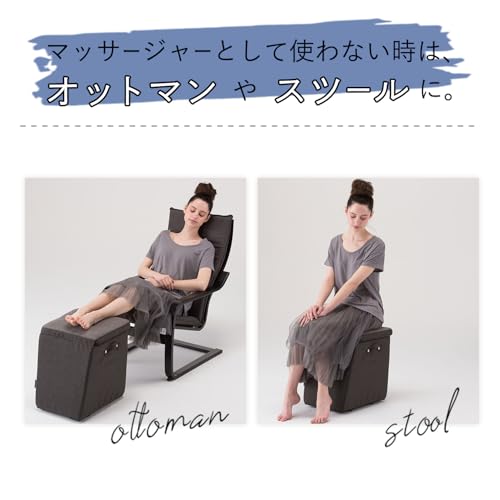 使わないときは椅子やオットマンとして使えるというものです。マッサージ機はどうしても使わないときに置き場所としても見た目としても邪魔になりがちですが、これなら普段からおいておけるのでいいかなと思いました。実際に見てきましたが、四角い形状もあって思ったよりも小さく見えました。太ももマッサージ機能がないのでやめましたが、かなり有力な候補でした。