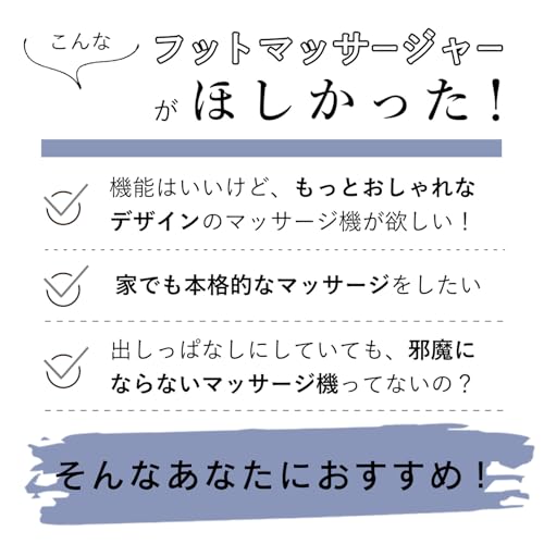 また、大型のマッサージチェア以上のフットマッサージ機能が欲しいという気持ちもありました。スペースと予算の関係からマッサージチェアは選択肢にありませんでしたが、マッサージチェアにも太ももまでできるものは見たことがありません。せっかく専用のフットマッサージャーにしたのだからここはこだわりたいところです。