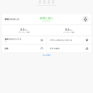 この画面ではルーターとインターネットとの通信速度がリアルタイムに表示され、ルーターと接続されているデバイス数が表示されます。また、インターネットに接続されている時間やシステムの稼働時間も確認可能です。